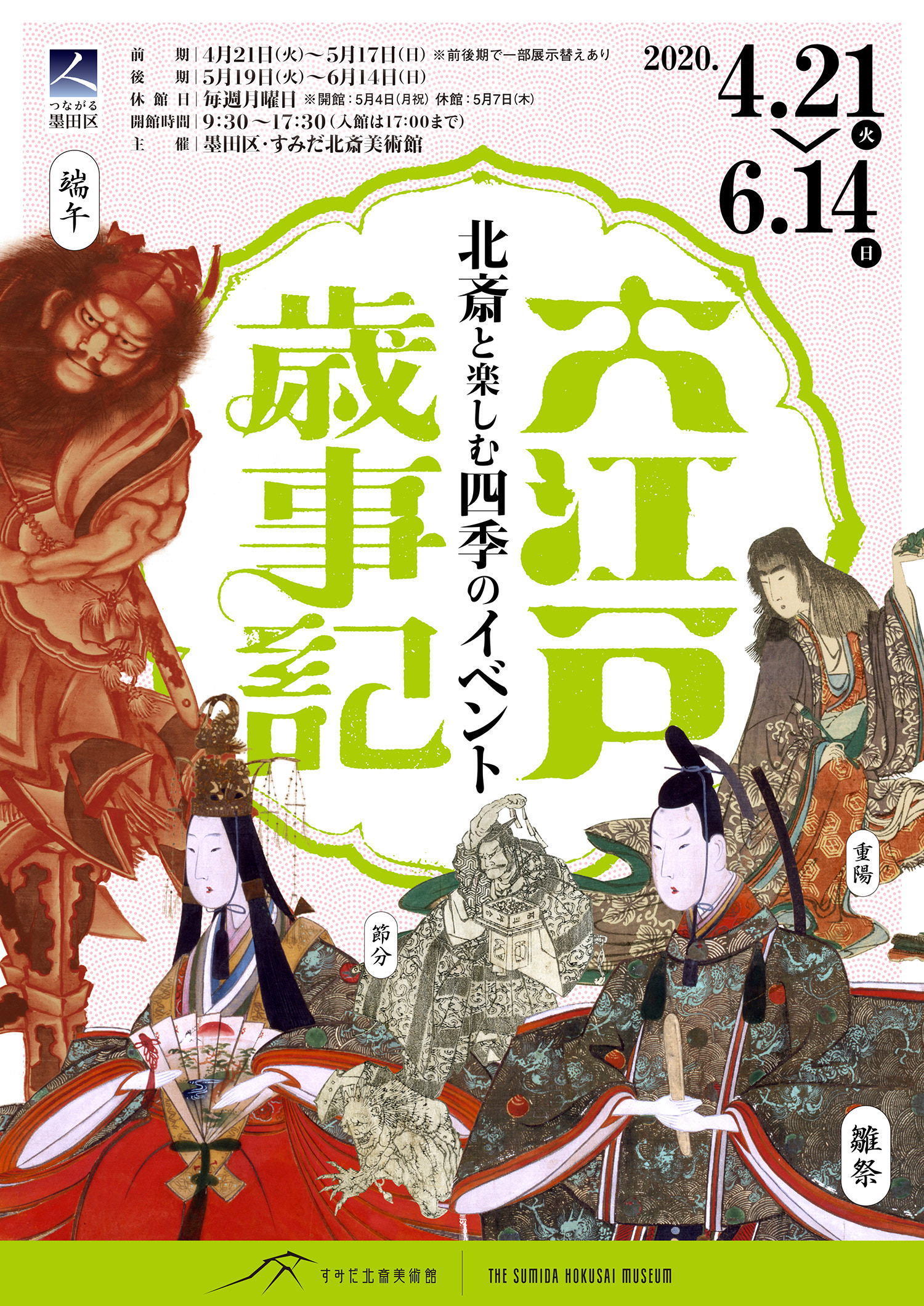「歌舞音曲鑑 北斎と楽しむ江戸の芸能」フライヤー、ポスター、デジタルサイネージ、チケット等(すみだ北斎美術館)
