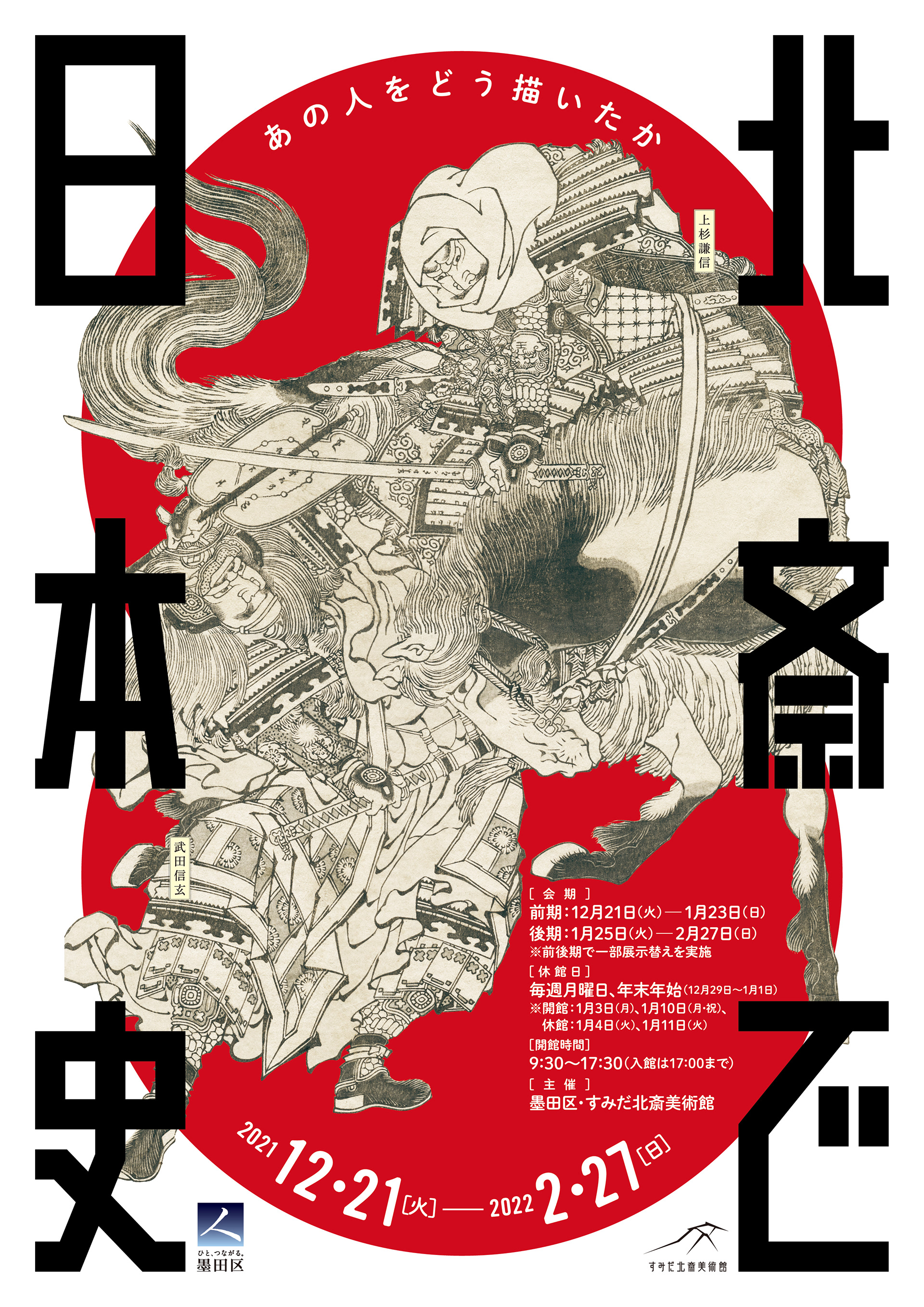 「北斎で日本史」フライヤー、ポスター、デジタルサイネージ、チケット等(すみだ北斎美術館)